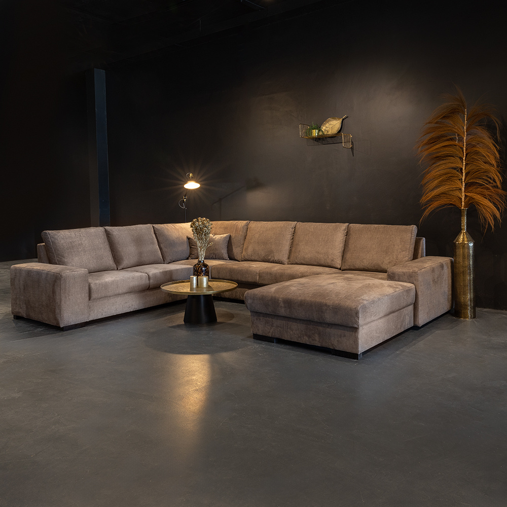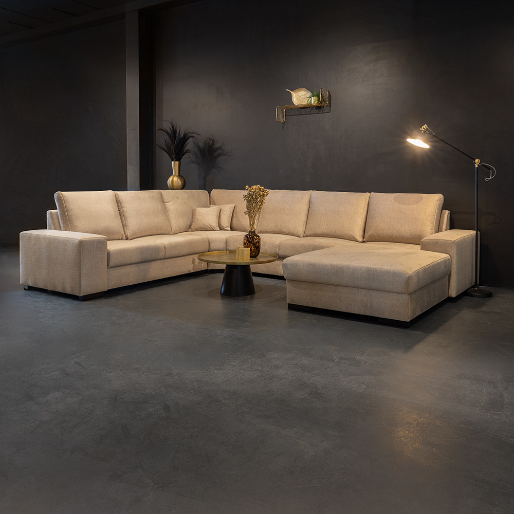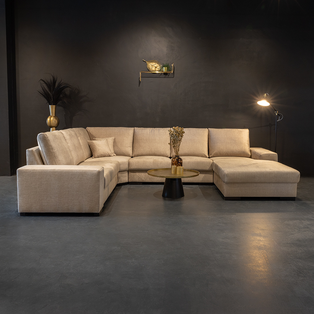 U-Bank Azzaro is een ware lust voor het oog. Met zijn ruime keuze in luxe stoffen en kleuren is er voor ieder wat wils. U-Bank Azzaro biedt een zee aan zit- en ligruimte en creëert een luxe setting in uw woonkamer. Met zijn donkere houten poten, brede armleuningen en comfortabele zit is het één en al genieten!