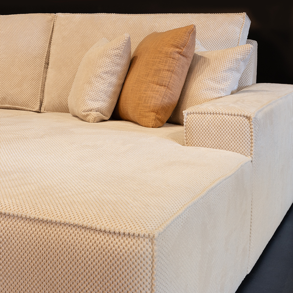 Hoogwaardige subtiele boucléstof voor een zachte touch en een luxe warme uitstraling.